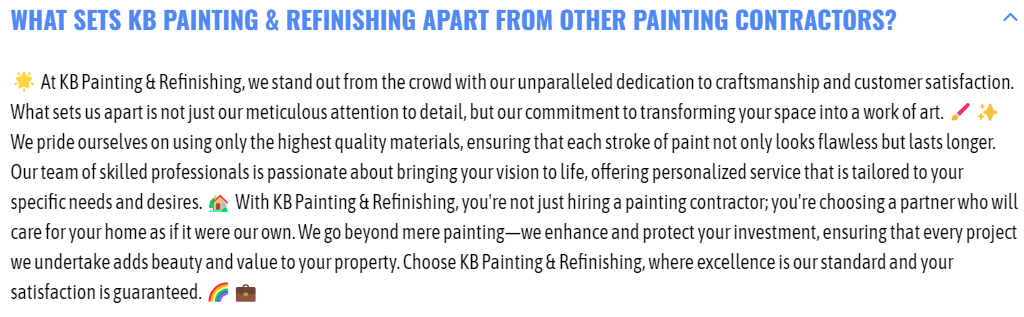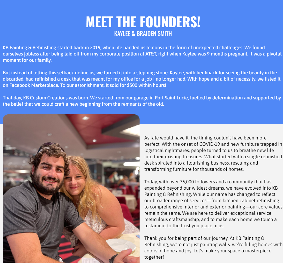 KB Painting & Refinishing LLC does not guarantee an exact color match to samples or previously applied colors.